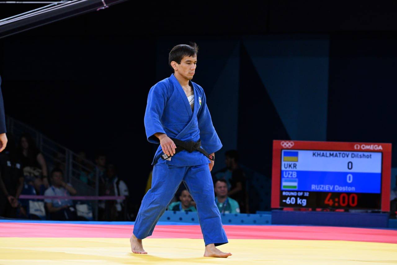 Дзюдо бўйича Ўзбекистон терма жамоаси аъзоси Достон Рўзиев Париж-2024 ёзги Олимпия ўйинларидаги иштирокини якунлади. Биринчи даврада украиналик Дилшод Холматов билан беллашган юртдошимиз қўшимча дақиқада имкониятни бой берди.
