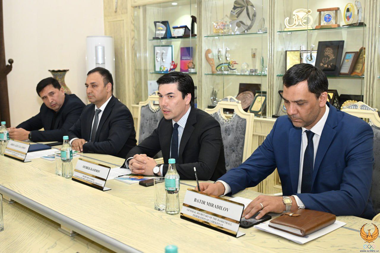 Меҳмонларни МОҚ Бош котиби Ойбек Касимов қарши олди. Шундан сўнг томонлар ўртасида ўзаро ҳамкорлик, мамлакатимизда баскетбол спорти ривожини янги босқичга олиб чиқиш мавзусига бағишланган учрашув бўлиб ўтди. Унда Латвиянинг юртимиздаги Фавқулодда ва Мухтор элчиси Рейнис Трокша, Спорт ўйинлари бўйича Республика олий спорт маҳорати мактаби директори Жасур Акрамов, Ботир Миродилов бошчилигидаги Ўзбекистон баскетбол федерацияси масъуллари ва Ўзбекистон Рақамли технологиялар вазирлиги вакили Элдор Расулов ҳам иштирок этишди.