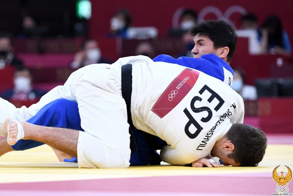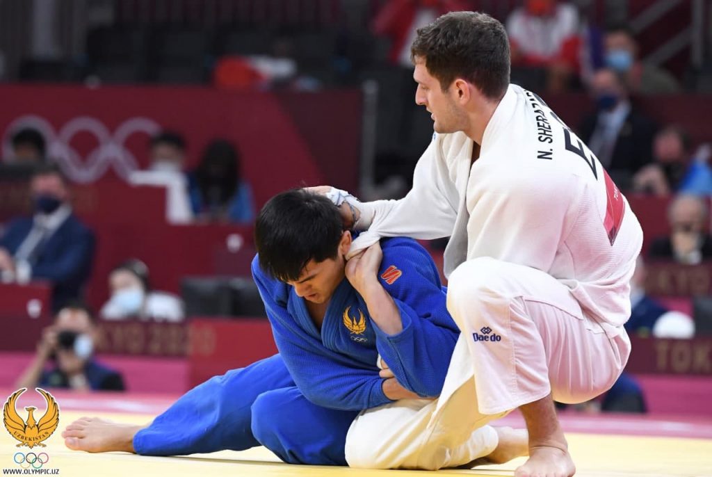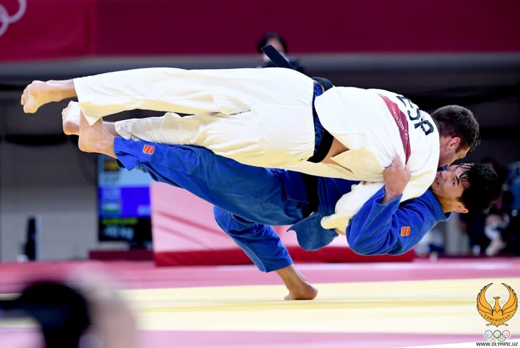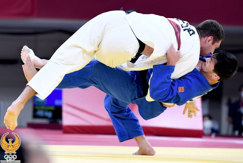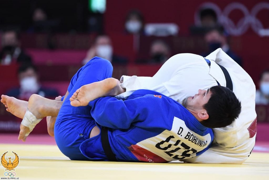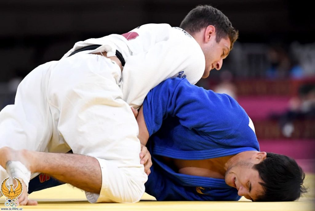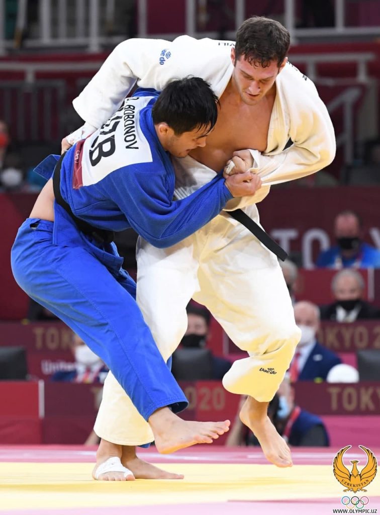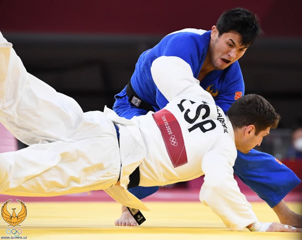 Давлат Бобонов (-90 кг) дзюдочиларимизнинг Токио-2020 Олимпия ўйинларидаги илк медалини тақдим қилишга яқин турибди. Испаниялик 2 карра жаҳон чемпиони Николоз Шеразадишвилини мағлуб этган вакилимиз эндиликда бронза медали учун туркиялик Михаэл Зганкка қарши баҳс олиб боради. Қуйида Шеразадишвили билан кечган шиддатли курашдан суратларни томоша қилинг: