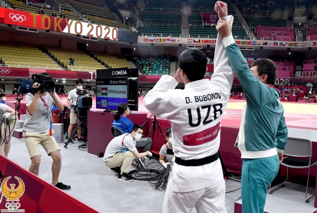 Давлат Бобонов дзюдочиларимизнинг Токио-2020 Олимпия ўйинларидаги дастлабки медалини қўлга киритди. Туркиялик Михаэл Згангкка қарши кечган беллашувда ҳамюртимиз рақибини иппон баҳоси билан мағлуб этиб, жамоамизга унутилмас қувонч тақдим қилди.
