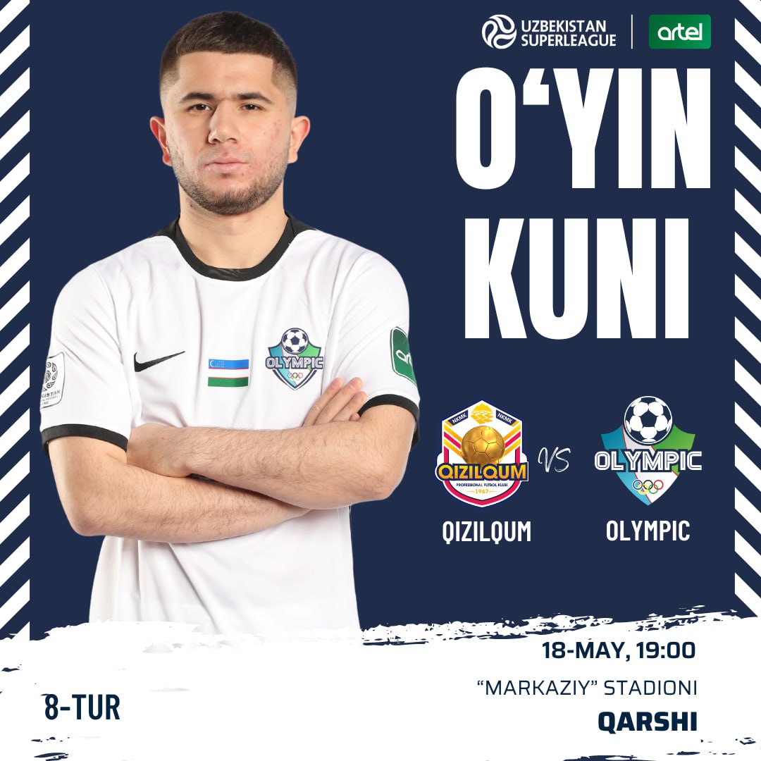 Суперлига. 8-тур Қизилқум 2 – 4 Олимпик Голлар: Ф.Жуманқўзиев 13ʼ, Г.Кухианидзе 83ʼ пен. - А. М…